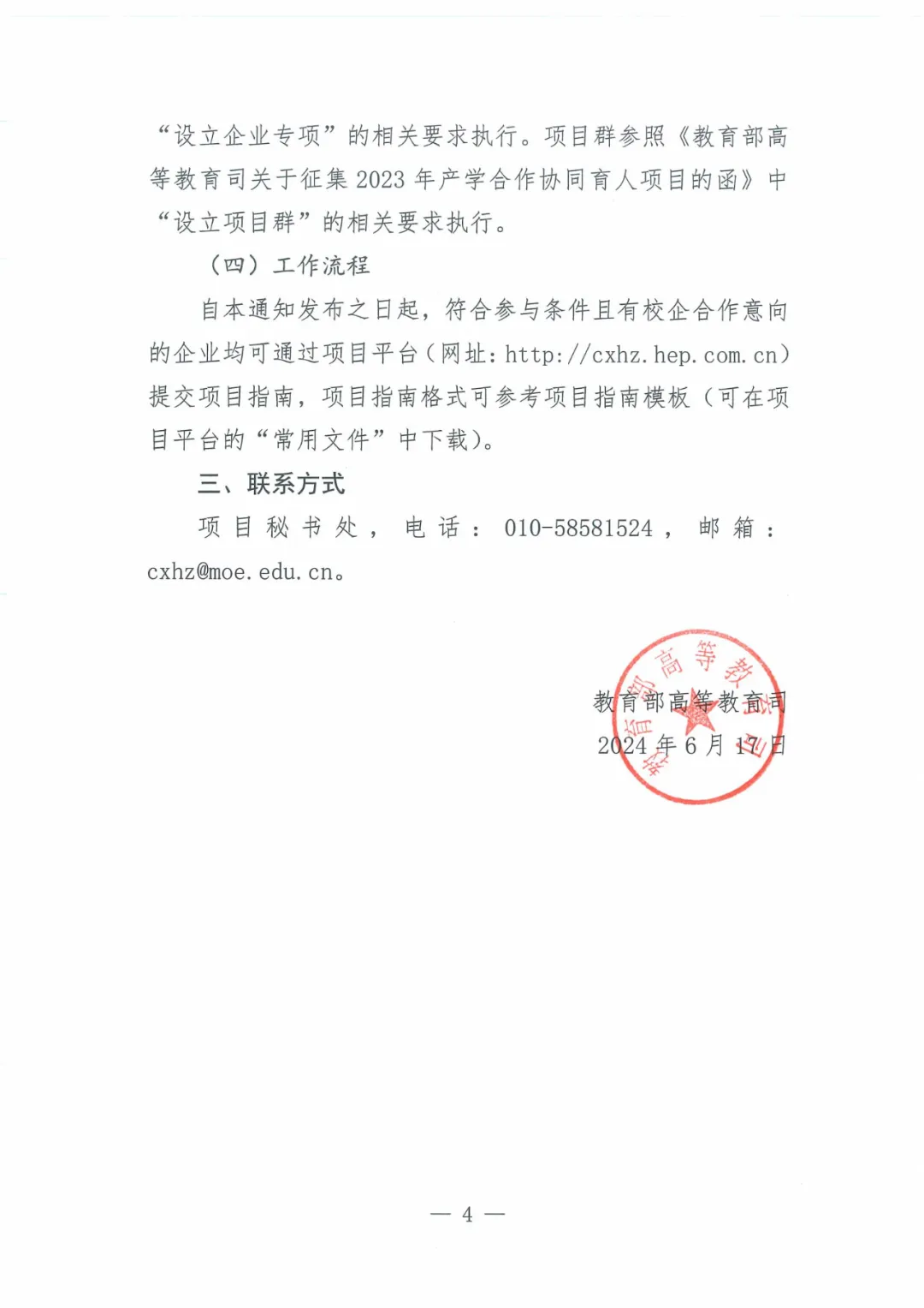 教育部高等教育司关于调整产学合作协同育人项目运行模式及征集2024年产学合作协同育人项目的通知