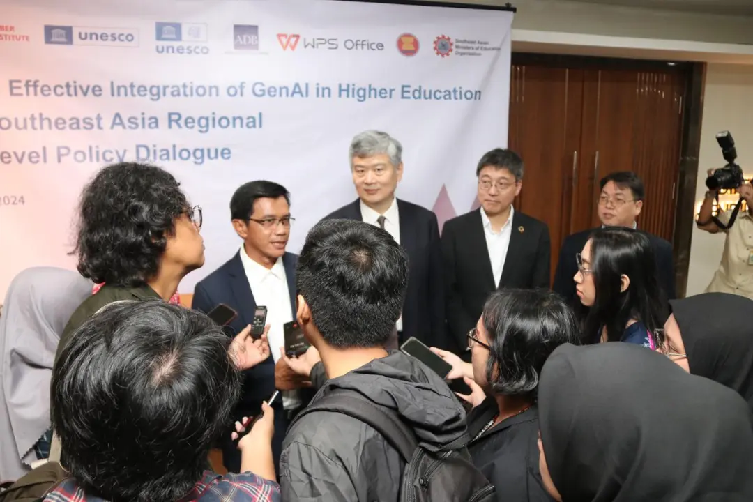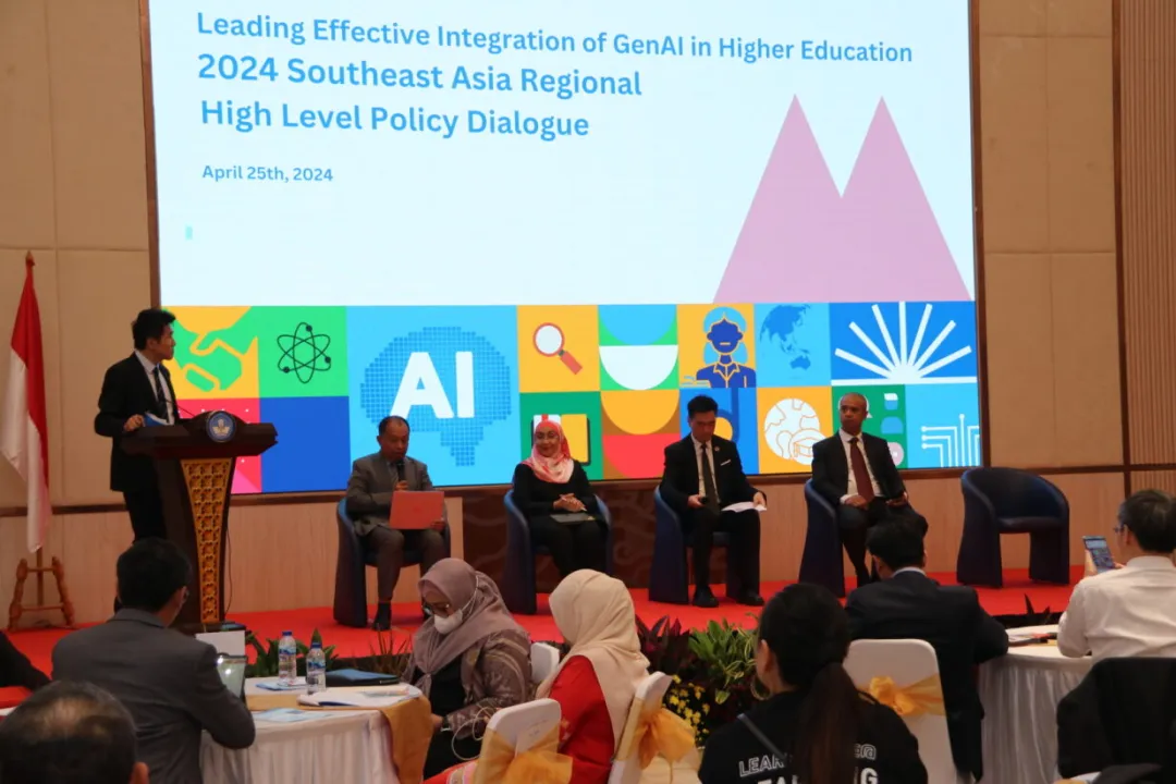 2024年4月25日,“引领生成式人工智能与高等教育的高效融合”2024年东南亚地区高级别政策对话会(以下简称“政策对话会”)在印度尼西亚雅加达成功举办。政策对话会由联合国教科文组织高等教育创新中心(中国深圳)(以下简称“创新中心”)、印度尼西亚网络教育学院 (IIOE印度尼西亚国家中心)、联合国教科文组织曼谷多部门区域办事处、联合国教科文组织雅加达多部门区域办事处共同主办,东南亚国家联盟秘书处、东南亚教育部长组织秘书处协办,受到亚洲开发银行和金山软件公司的赞助。政策对话会邀请了教育部官员 、国际组织代表、高校领导、专家学者、企业代表等高等教育利益相关方,就生成式人工智能(Generative Artificial Intelligence,以下简称“GenAI”)融入高等教育、教师专业发展等议题分享经验、凝聚共识。来自中国、印度尼西亚、马来西亚、菲律宾、泰国、柬埔寨、缅甸、越南的近200位高等教育领导和利益相关方通过线上和线下形式参会。