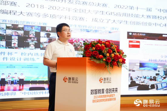 武汉大学遥感信息工程学院副院长胡庆武做了题为“遥感信息工程拔尖创新人才数智实践平台建设”的报告。武汉大学遥感信息工程实验教学中心作为国家级实验教学示范中心,从实验教学中心教学与人才培养实践、教学团队建设,数智创新实践教学平台建设,数智教育拔尖人才培养成效等多方面深入浅出介绍实验教学中心在数字化转型中的引领性和硕果,为其他院校数字化转型提供参考和广阔发展思路。