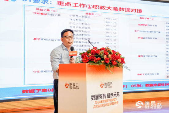 武汉噢易云计算股份有限公司教育行业市场总监和产教融合中心总监杨镇做了题为“实验教学数字化:孪生实验室与数据治理新模式探索应用实践 ”的报告。