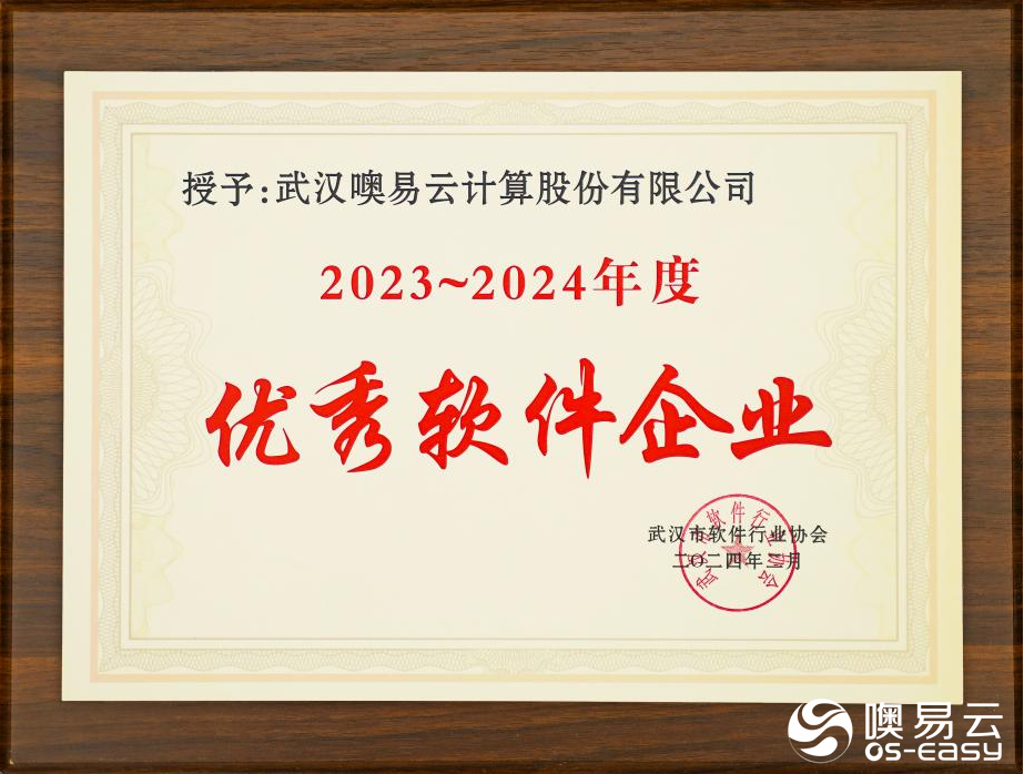 近日,武汉市软件行业协会第五届四次会员代表大会顺利召开,会上对2023-2024年度优秀企业和优秀工作者进行了表彰。武汉 噢易云计算股份有限公司凭借雄厚的技术创新能力与先进的软件产品荣获“2023-2024年度优秀软件企业”荣誉称号。