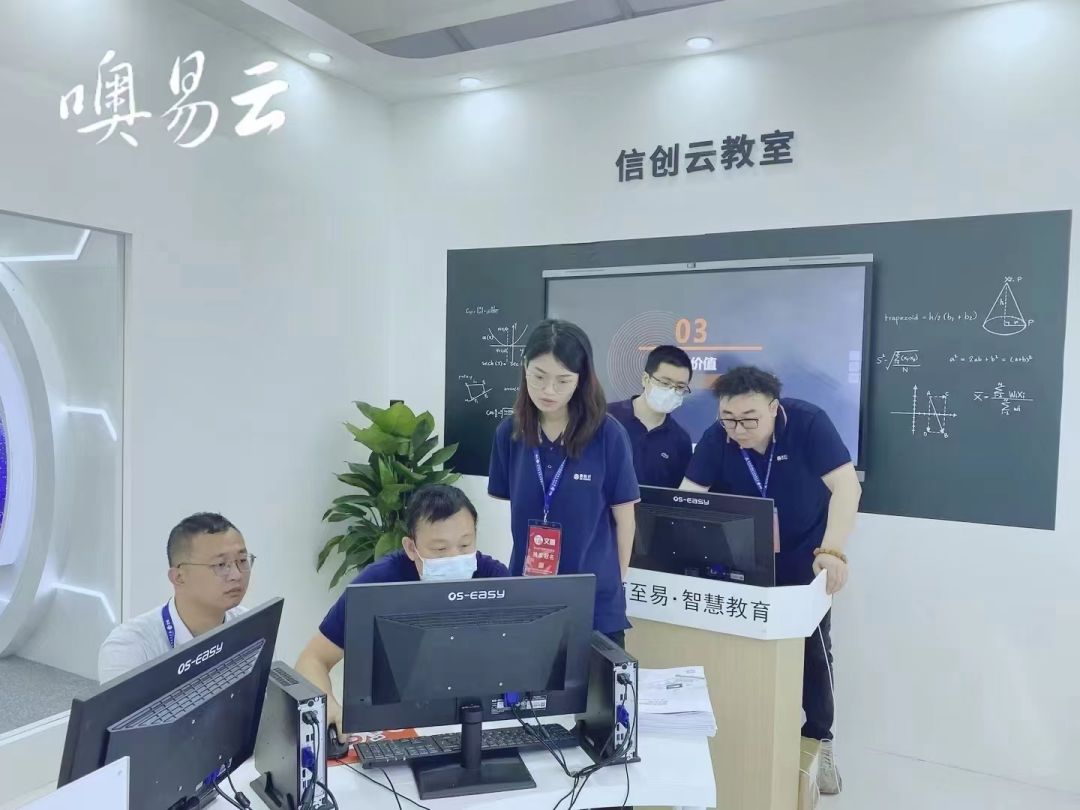 噢易云作为专业的桌面云方案提供商,将新一代信息技术与教育教学深度融合,携孪生教室TSpace、语音云教室、信创云教室、新基建智慧实验室、实验室智慧服务平台LISS、云终端等多款产品方案亮相,为用户提供智慧化和数字化互动体验空间。
