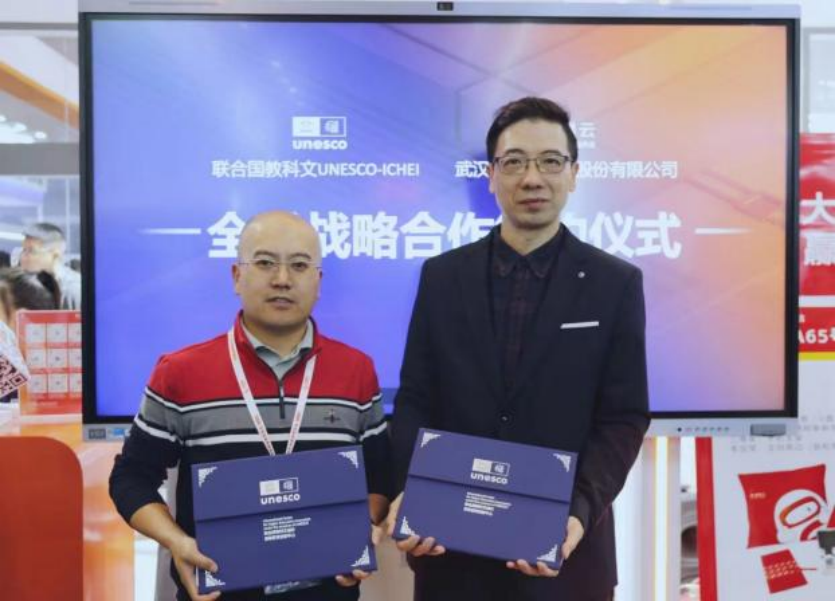 同期,噢易云与联合国教科文UNESCO-ICHEI举行全球战略合作签约仪式。噢易云副总裁周毅、联合国教科文组织高等教育创新中心IIOE运营中心负责人薛峰出席签约仪式,双方将在智慧教室捐建、云计算认证、课程资源共享、国际业务拓展等领域开展合作,并就亚非六国智慧教室合作达成一致意见。