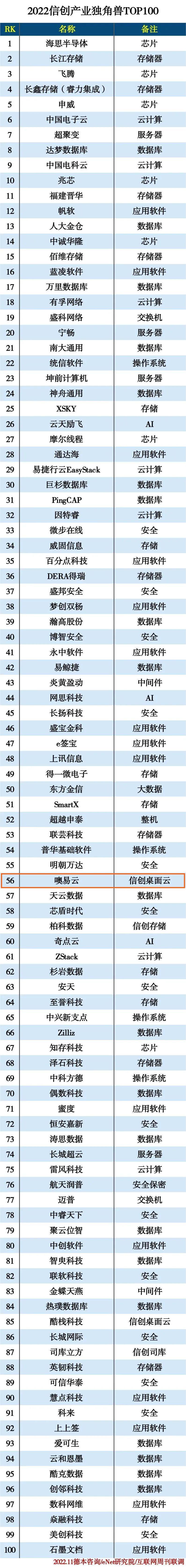 信创荣誉 | 噢易云入选2022信创产业独角兽100强