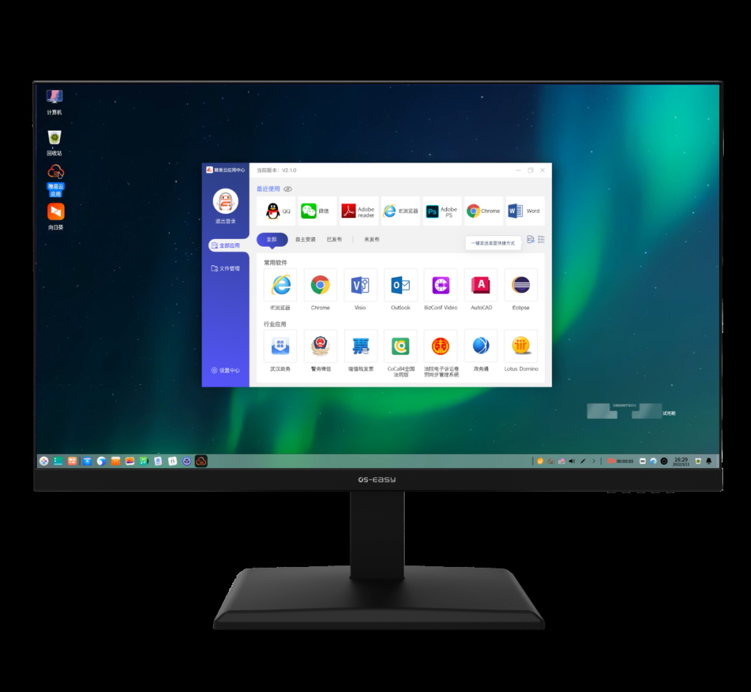 全面适配国产终端:全面兼容适配国产化终端(兆芯、海光、飞腾、龙芯、海思麒麟芯片)部署;提供噢易云应用软件解决国产应用体验不佳及无法安装等难题。