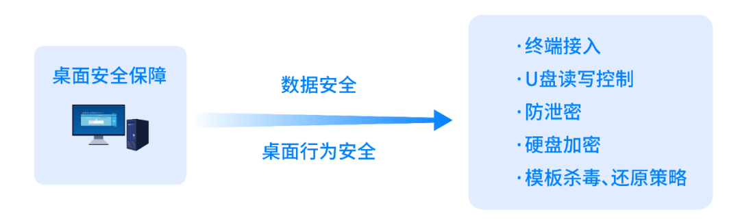 多种防护机制联合保障:终端接入限制、终端桌面行为管控、终端数据防泄密、终端硬盘数据加密、终端桌面数据多重还原保护 桌面统一杀毒,多种安全防护措施联合保障。