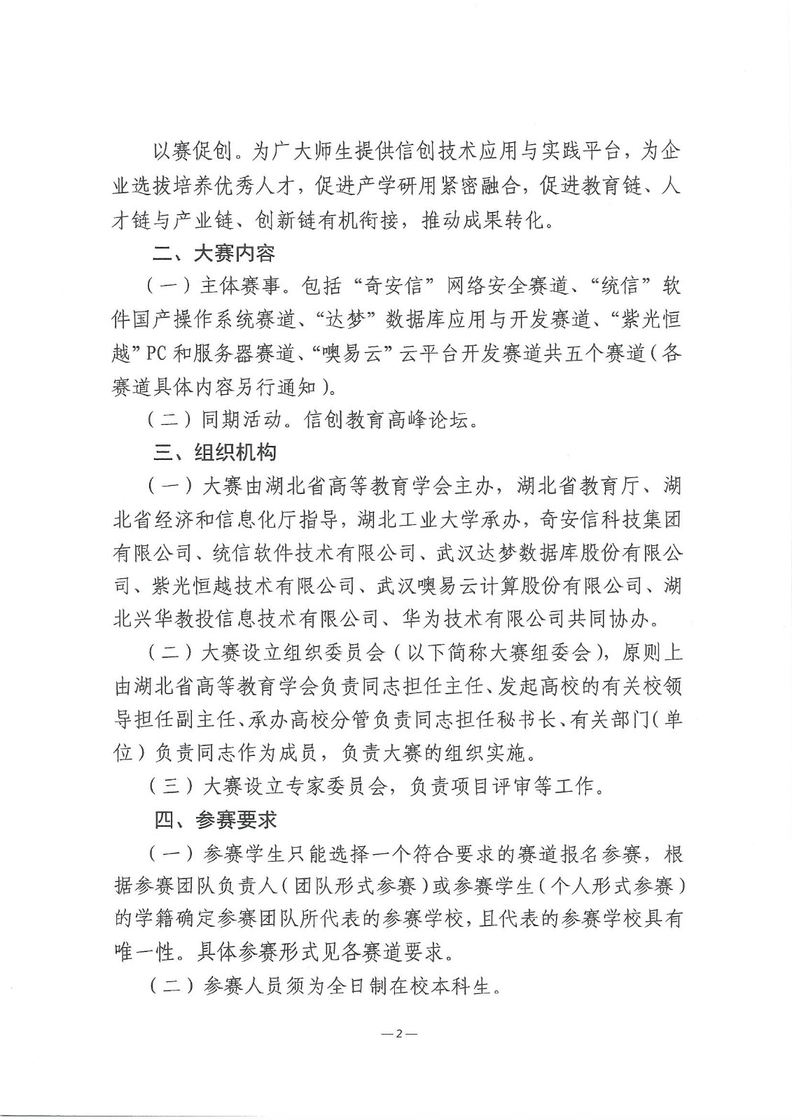 关于举办第二届湖北省大学生信创大赛的通知