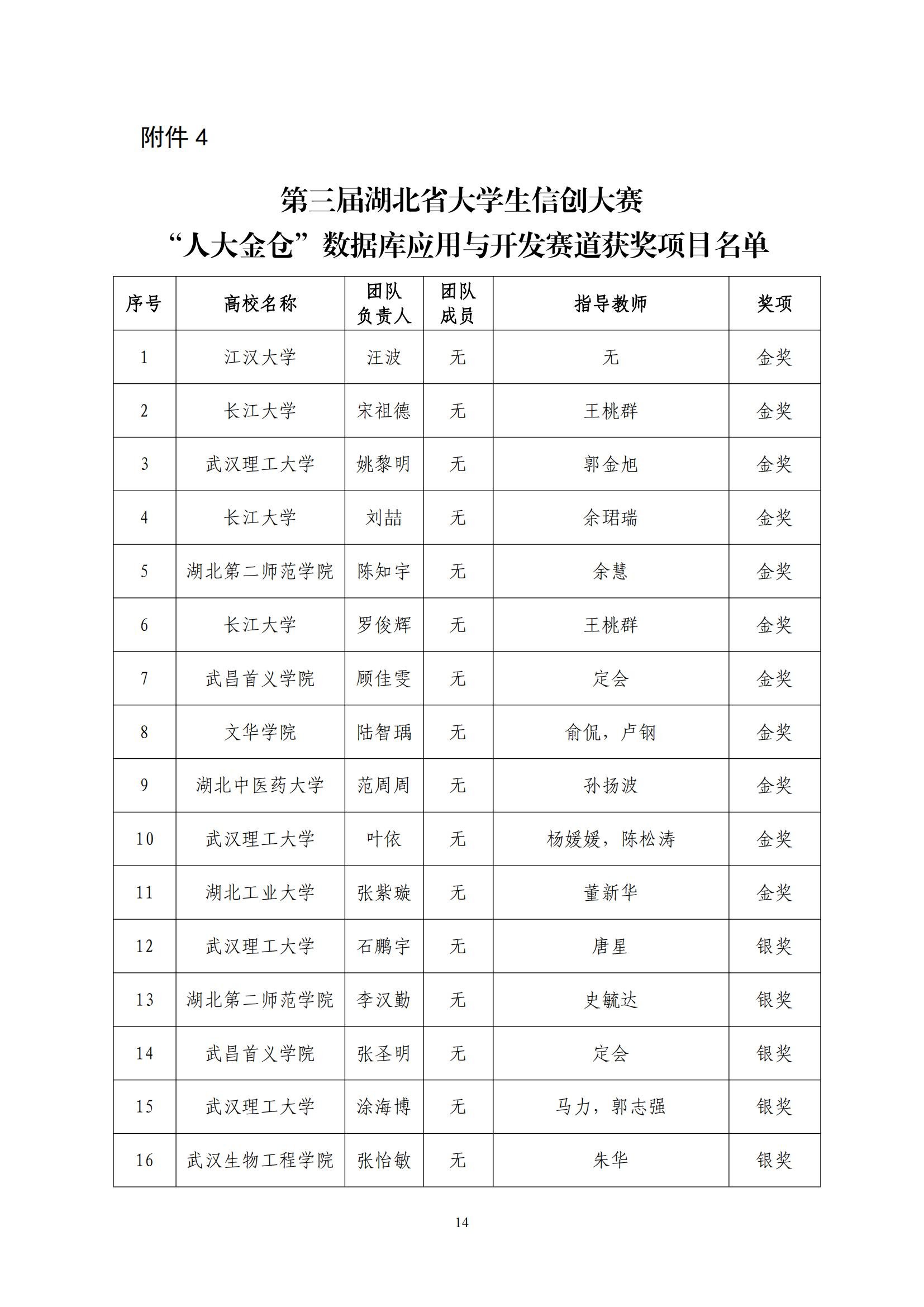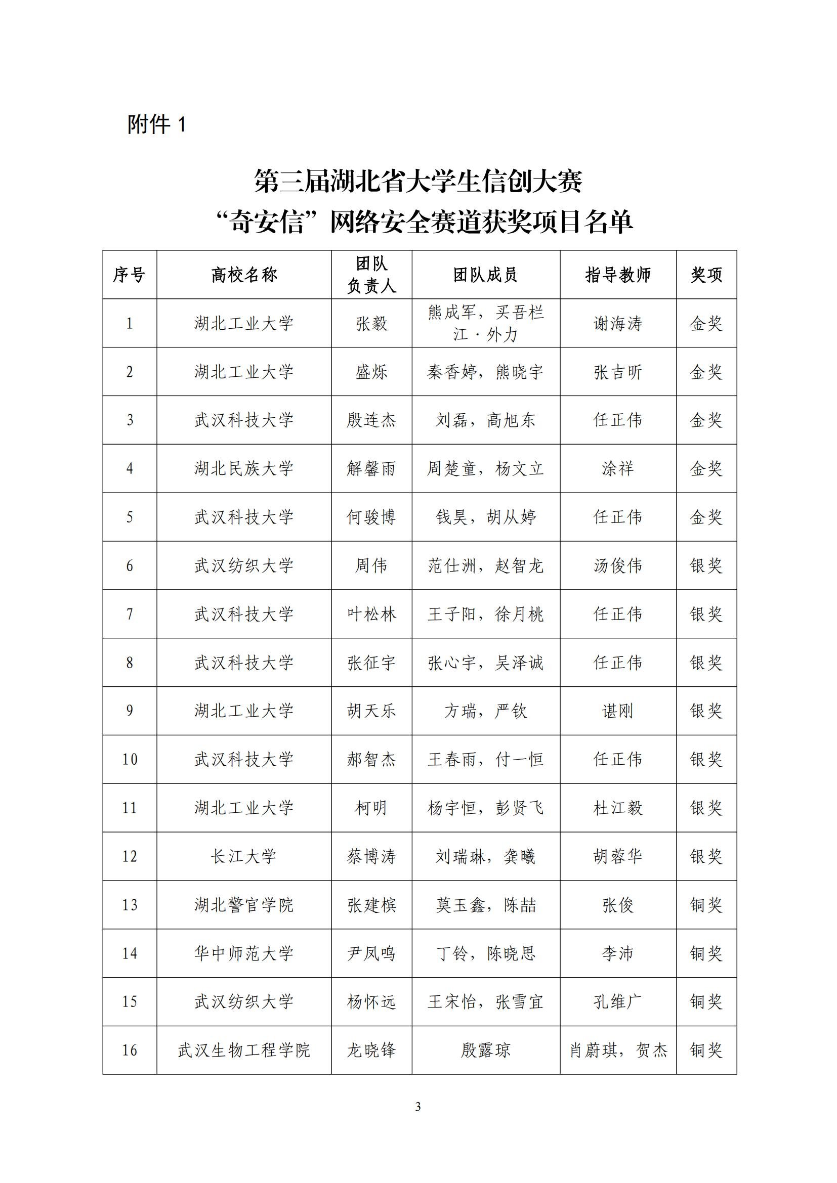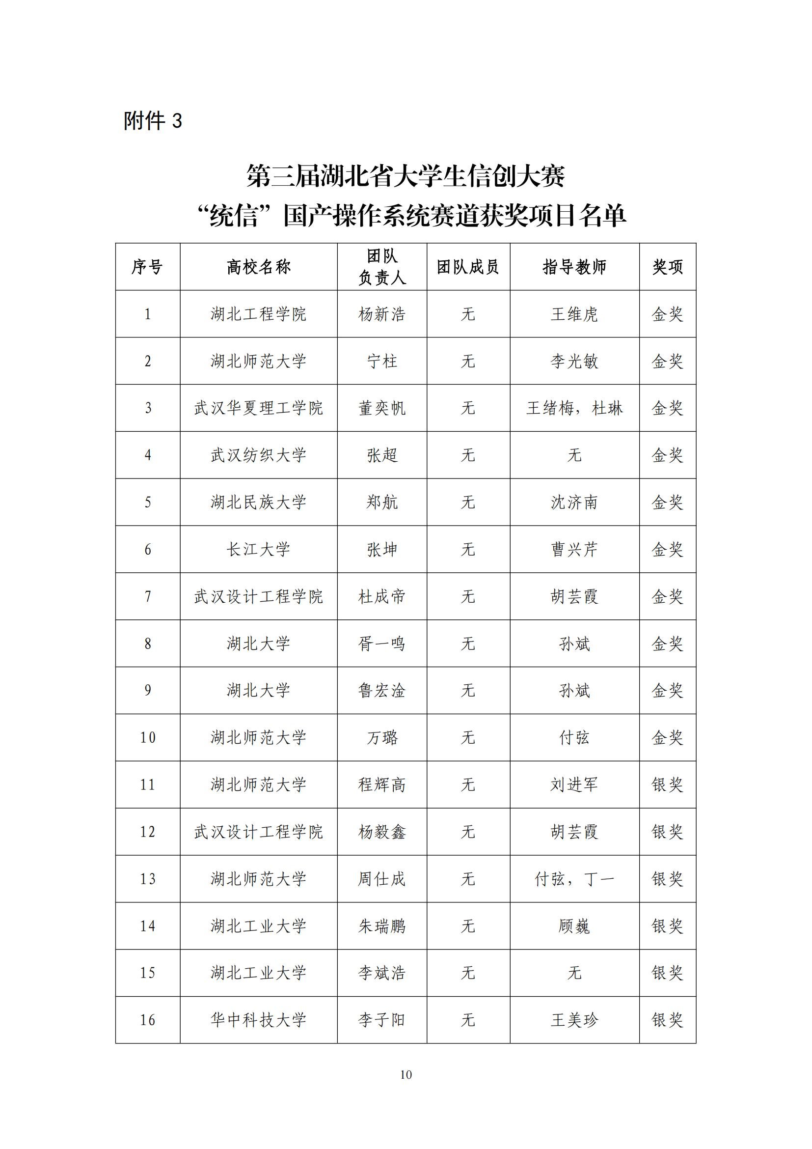 关于对第三届湖北省大学生信创大赛获奖名单进行公示的通知(第5号)