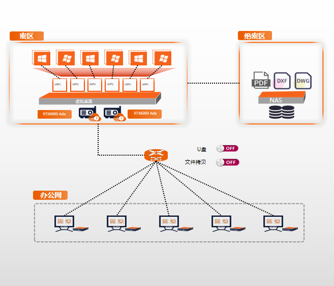 所有研发代码、设计文档、测绘数据等核心资产集中存储在数据中心,终端设备仅传输加密画面,数据永不落地,从根本上杜绝因设备丢失、故障或恶意拷贝导致的数据泄露风险。