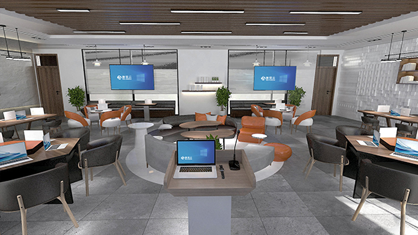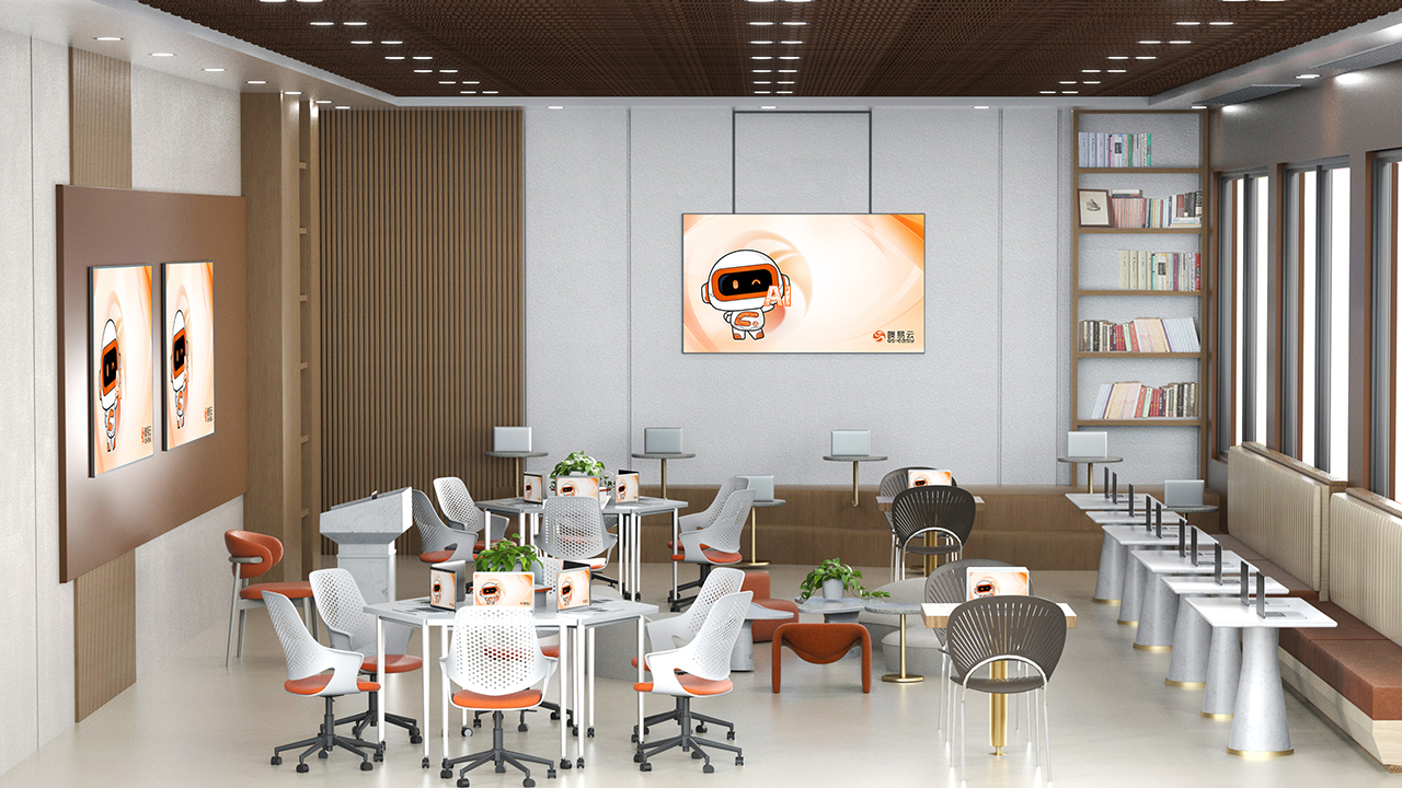 噢易孪生实验室开放型采用5-6人独立视觉区域的座位布局,为学生营造一个轻松、开放且有利于自主学习的环境。同时考虑学生在使用设备时的便捷性,设有便捷的充电和笔记本电源接入设施。