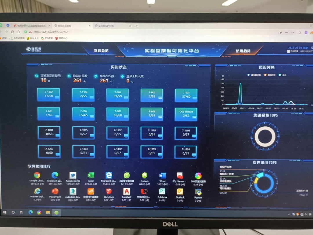 4、伴随式数据采集分析,自动化统计实验室占用率、终端利用率、终端能耗、硬件风险、报修分析、活动场次等,量化使用效能,让申请改造更有依据;