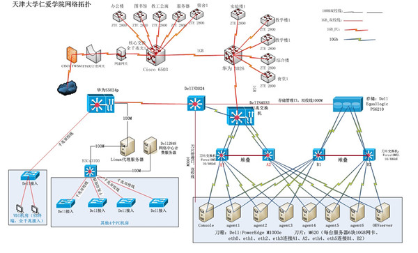 天津大学仁爱学院网络环境拓扑图: