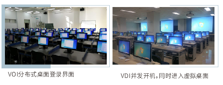 经济管理学院8个机房,共计500点终端,其中5个机房300点部署噢易教育桌面云系统(VDI),3个机房200点部署署噢易分布式桌面云产品(VOI)