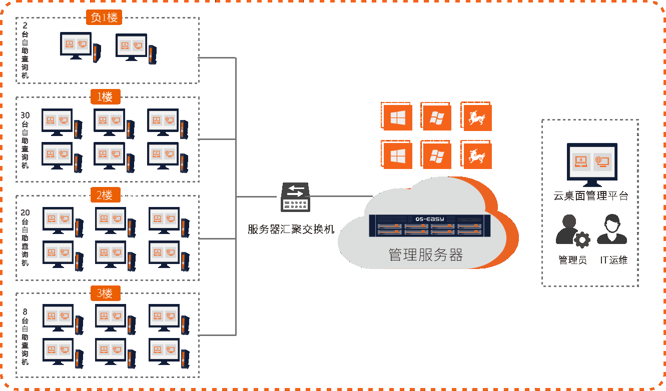 跨楼层分散终端的管理维护,降低日常运维管理工作量