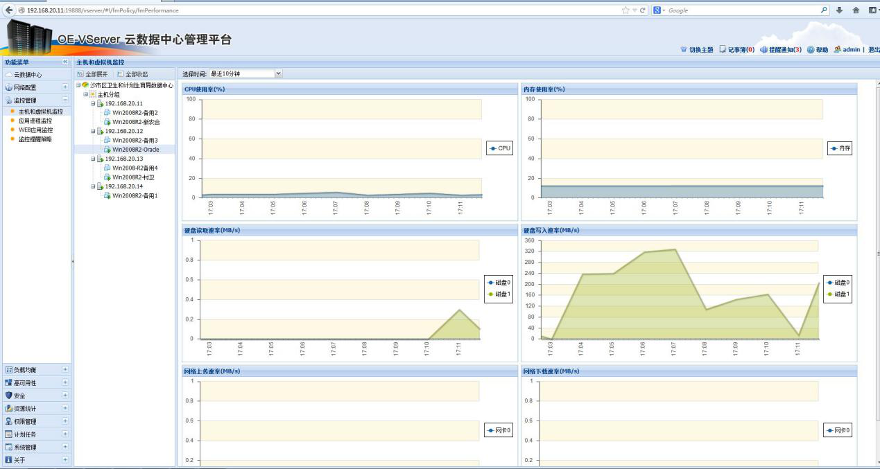 将数据库、新龙合、村卫生系统3个核心系统配置了动迁迁移策略,当该虚拟机所在的服务器故障,虚拟机会自动迁移到其他服务器上,保障业务运行连续性