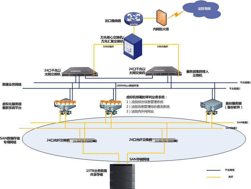 法院审判业务管理系统虚拟化服务器集群平台示意图
