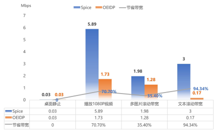 OEIDP协议和Spice协议日常办公操作带宽占用对比数据
