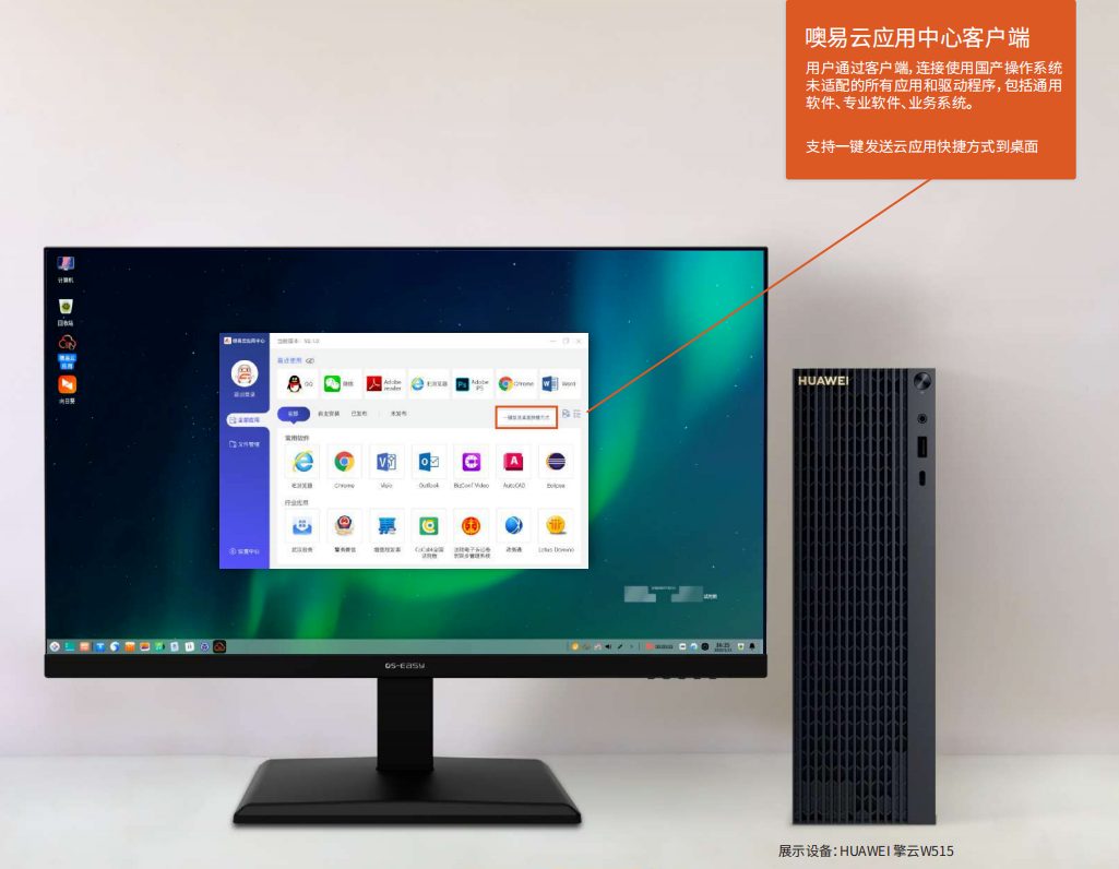 01在向国产设备和操作系统迁移过程中,部分Windows应用因改造难度大、重写成本高等因素暂时不能迁移适配,可以利用云桌面/云应用方案过渡,实现已改造应用和未改造应用“双轨运行”,保证业务稳定和连续;