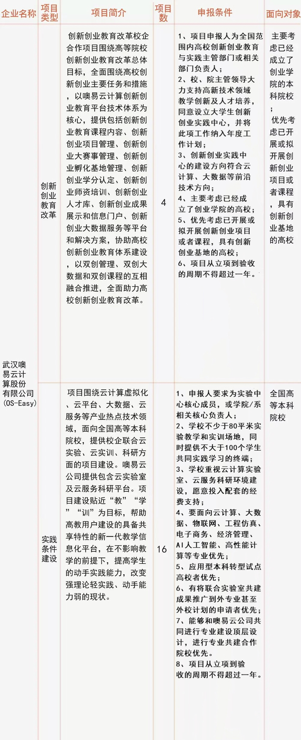 为了积极响应教育部高等教育司发布的《关于征集2018年产学合作协同育人项目的函》号召,配合落实教育规划纲要,丰富产学合作协同育人项目内容,促进教育创新机制改革,噢易云筹备了2018年产研合作协同育人项目,从“创新创业教育改革项目””与“实践条件建设项目”2个类别,专业方向主要涵盖云计算、大数据、物联网、大数据、工程仿真、电子商务、AI人工智能和高性能计算等方面。