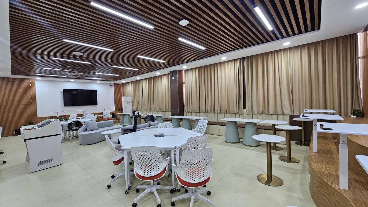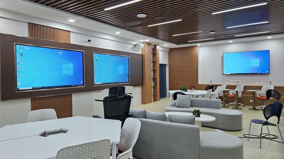 2024年南昌航空大学现教中心联合噢易云打造1间开放型孪生实验室,作为现教中心开放性学习空间试点,服务于各学院计算机公共教学。在空间设计上,孪生实验室设有单人学习卡座区、团队项目开发座席区、小组学习座席区、会议讨论座席区等多种座席空间,便于多种形式的教学和学习模式使用;在孪生实验室内,课内学生自带笔记本参与计算机实验教学,课后开放期间学生自带笔记本电脑进行自主学习。