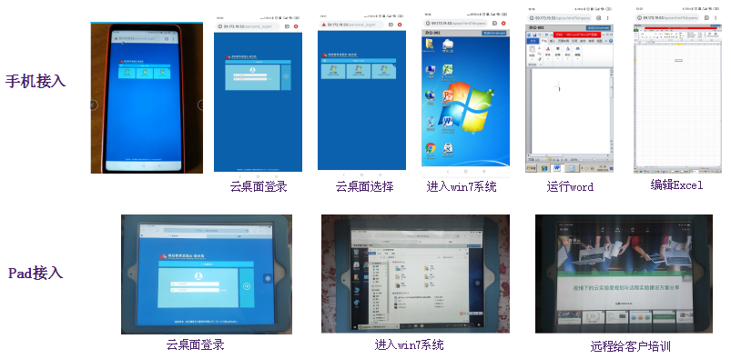 1)移动访问桌面: 云终端电源开启,启动进入登录界面输入个人账号,随时随地登录访问云端个人办公桌面;