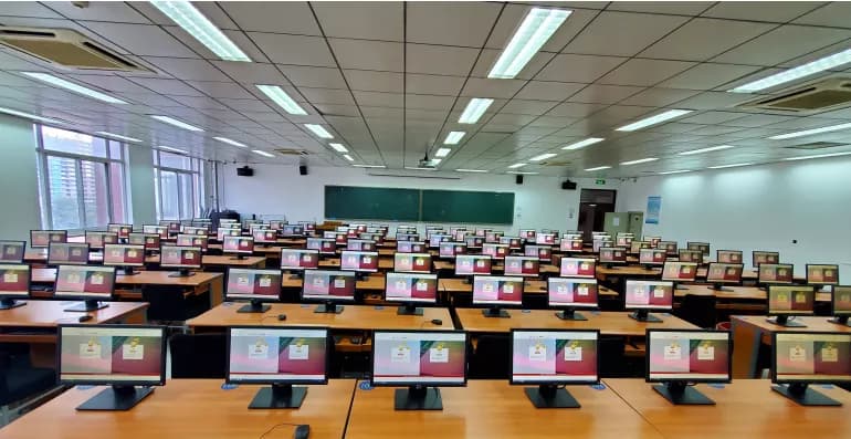 北京大学医学部逸夫楼共部署510点分布式桌面云,1630个云桌面系统,分布在6间计算机云实验机房,用于医学部日常教学、实验实训、各类考试等场景。