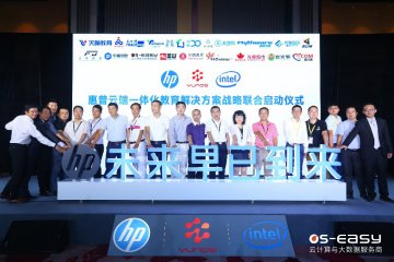 会上,惠普与阿里巴巴、英特尔全面升级三方战略合作,共同发布了“惠普云端一体化教育解决方案”。